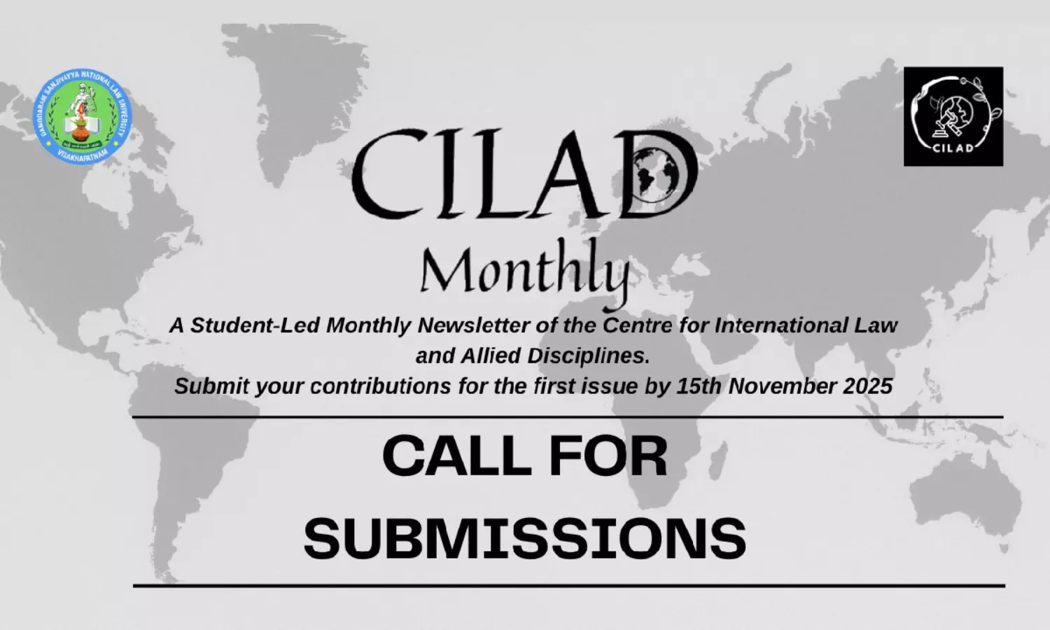 The Centre for International Law and Allied Disciplines (CILAD) at Damodaram Sanjivayya National Law University (DSNLU) has launched “CILAD Monthly”, a student-led newsletter dedicated to contemporary developments in International Law and allied disciplines. The publication aims to serve as a platform for interdisciplinary engagement, fostering analytical discourse and creative exploration in global legal studies.