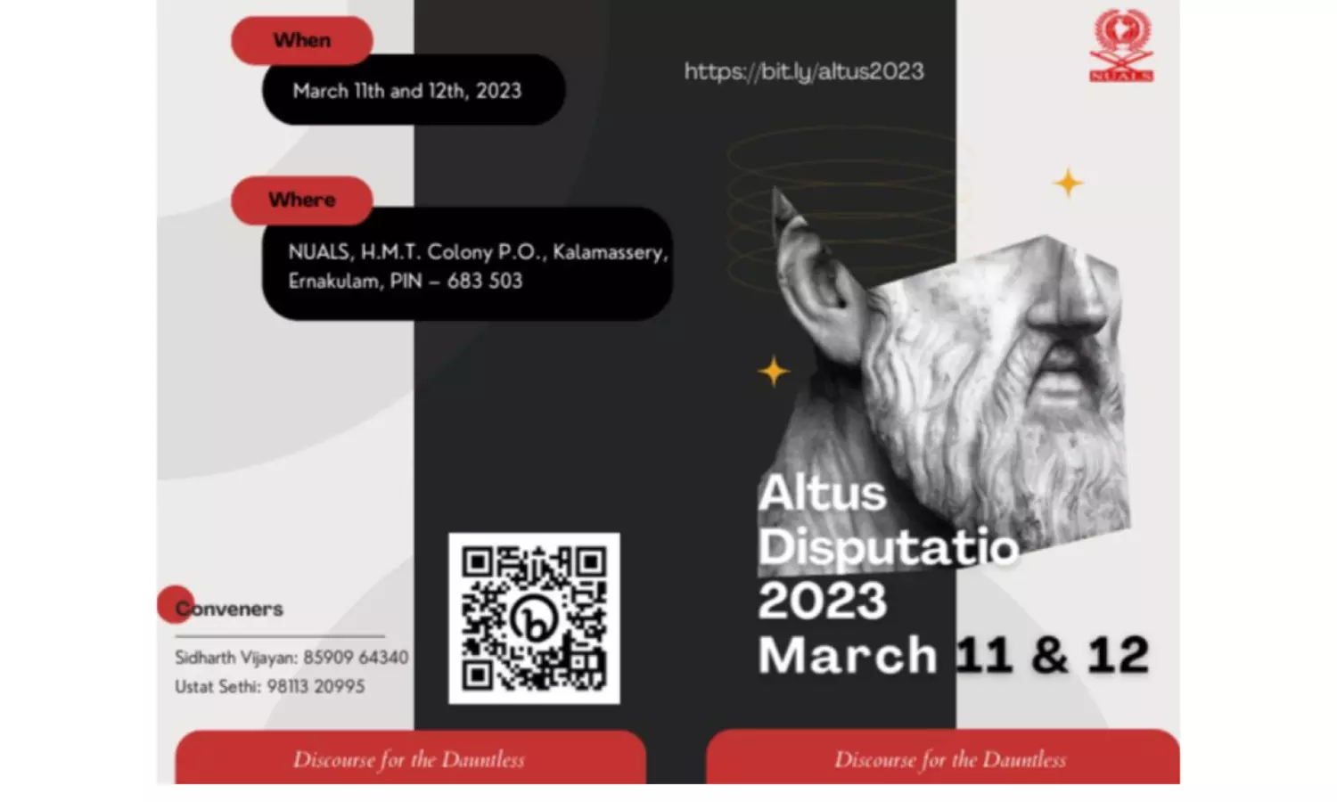 The National University of Advanced Legal Studies, Kochi in association with the Center for Law and Economics, NUALS is organizing the Xth edition of Altus Disputatio on the 10th, 11th and 12th March 2023.