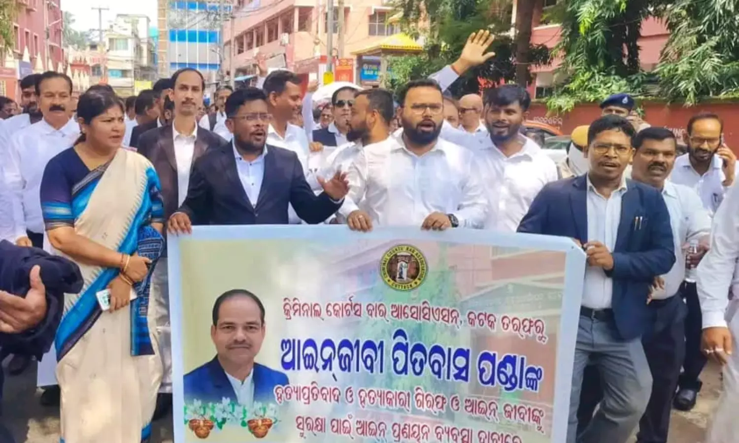 A pen-down protest march was carried out in Cuttack on Wednesday (October 8) by lawyers who are members of various bar bodies in the city including the Odisha High Court Bar Association (OHCBA), protesting against the brutal murder of Advocate Pitabash Panda.