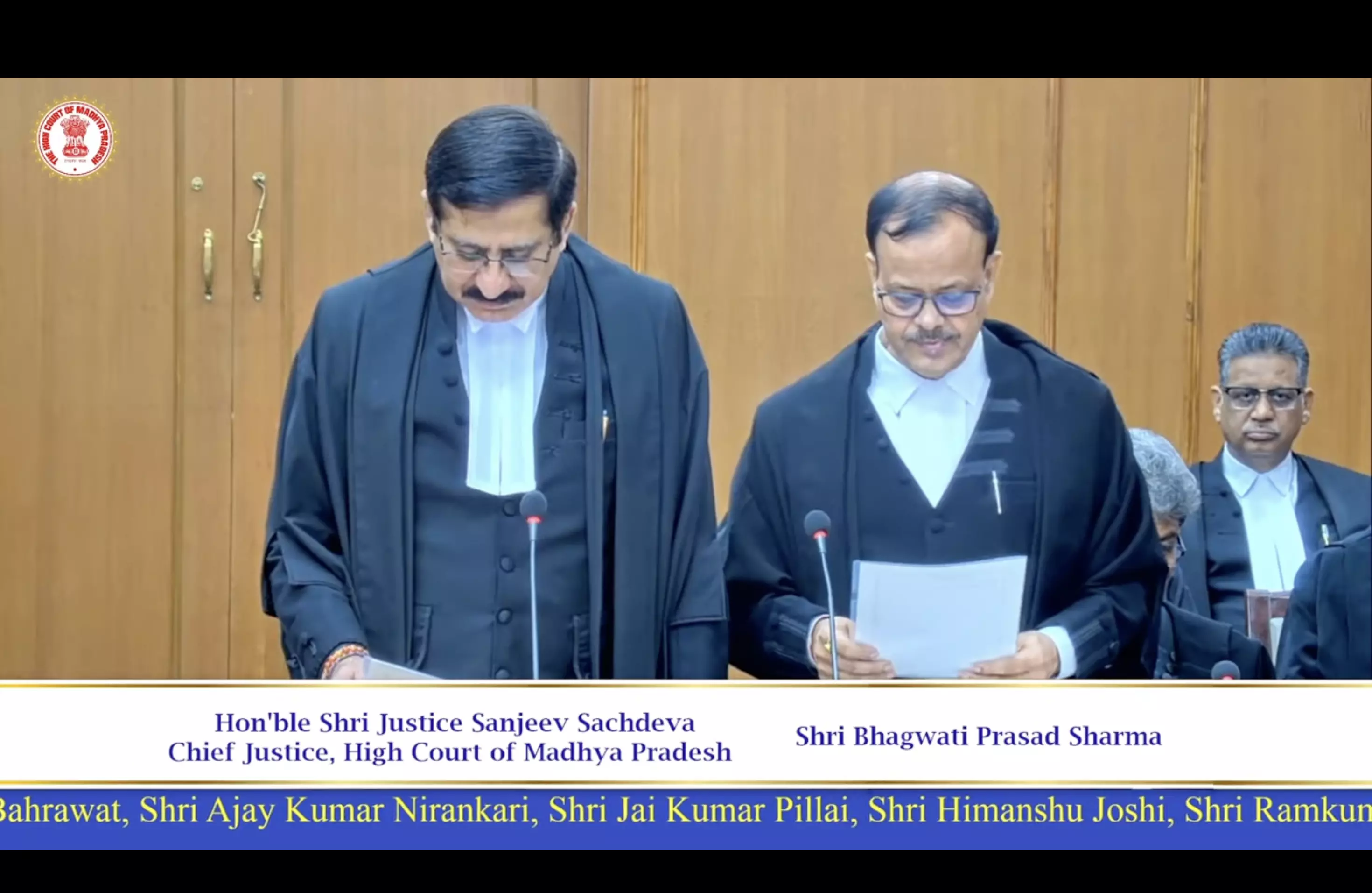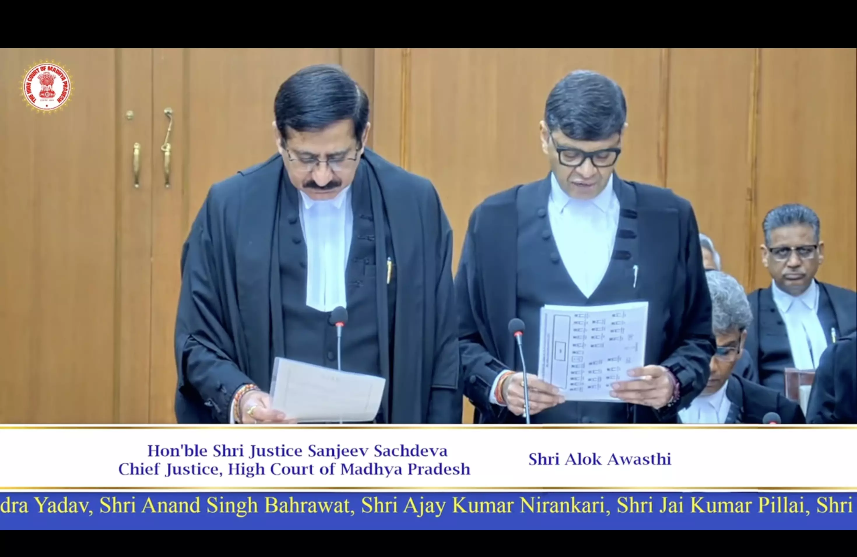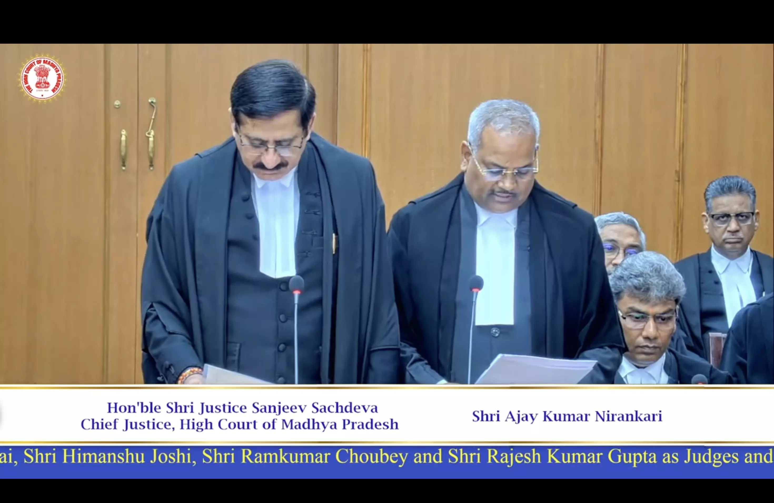 Advocates Pushpendra Yadav, Anand Singh Bahrawat, Ajay Kumar Nirankari, Jai Kumar Pillai, Himanshu Joshi and Judicial Officers Ramkumar Choubey and Rajesh Kumar Gupta were sworn-in as Judges of the High Court.