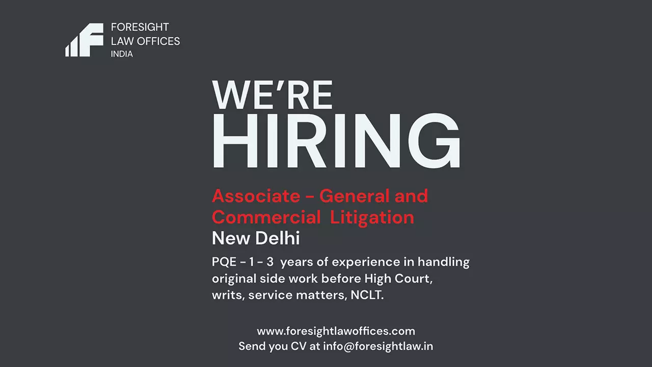 Foresight Law Offices India is inviting applications for the position of Associate to join its Litigation team to handle a diverse portfolio of commercial and civil disputes across forums.