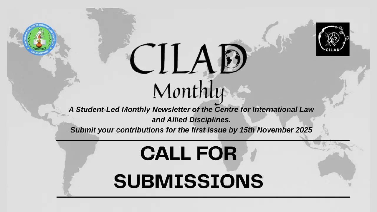 The Centre for International Law and Allied Disciplines (CILAD) at Damodaram Sanjivayya National Law University (DSNLU) has launched “CILAD Monthly”, a student-led newsletter dedicated to contemporary developments in International Law and allied disciplines. The publication aims to serve as a platform for interdisciplinary engagement, fostering analytical discourse and creative exploration in global legal studies.