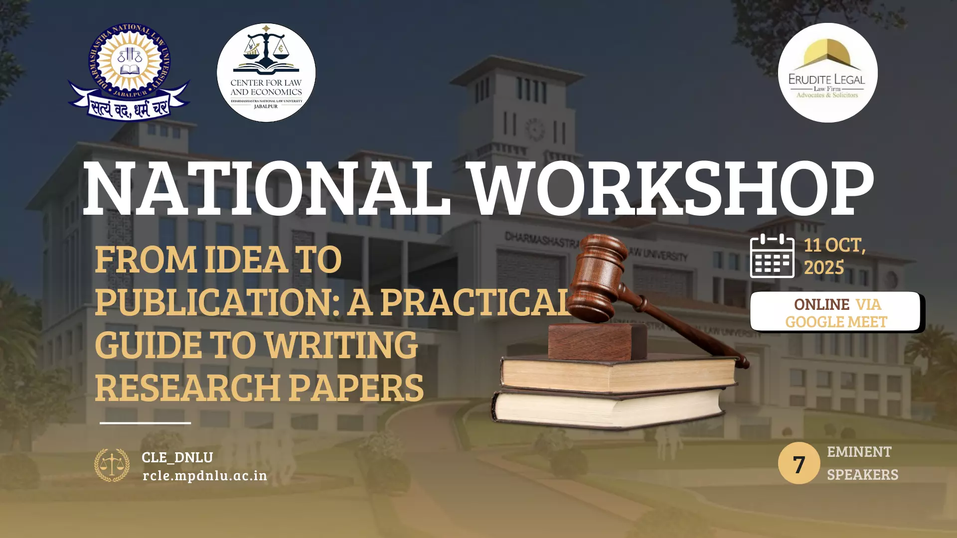 Centre for Law & Economics, Dharmashastra National Law University (DNLU) Jabalpur in collaboration with Erudite legal, New Delhi is organising a National Workshop on the theme "From Idea to Publication: A Practical Guide to Writing Research Papers" on 11th October 2025 in online mode via Google Meet.