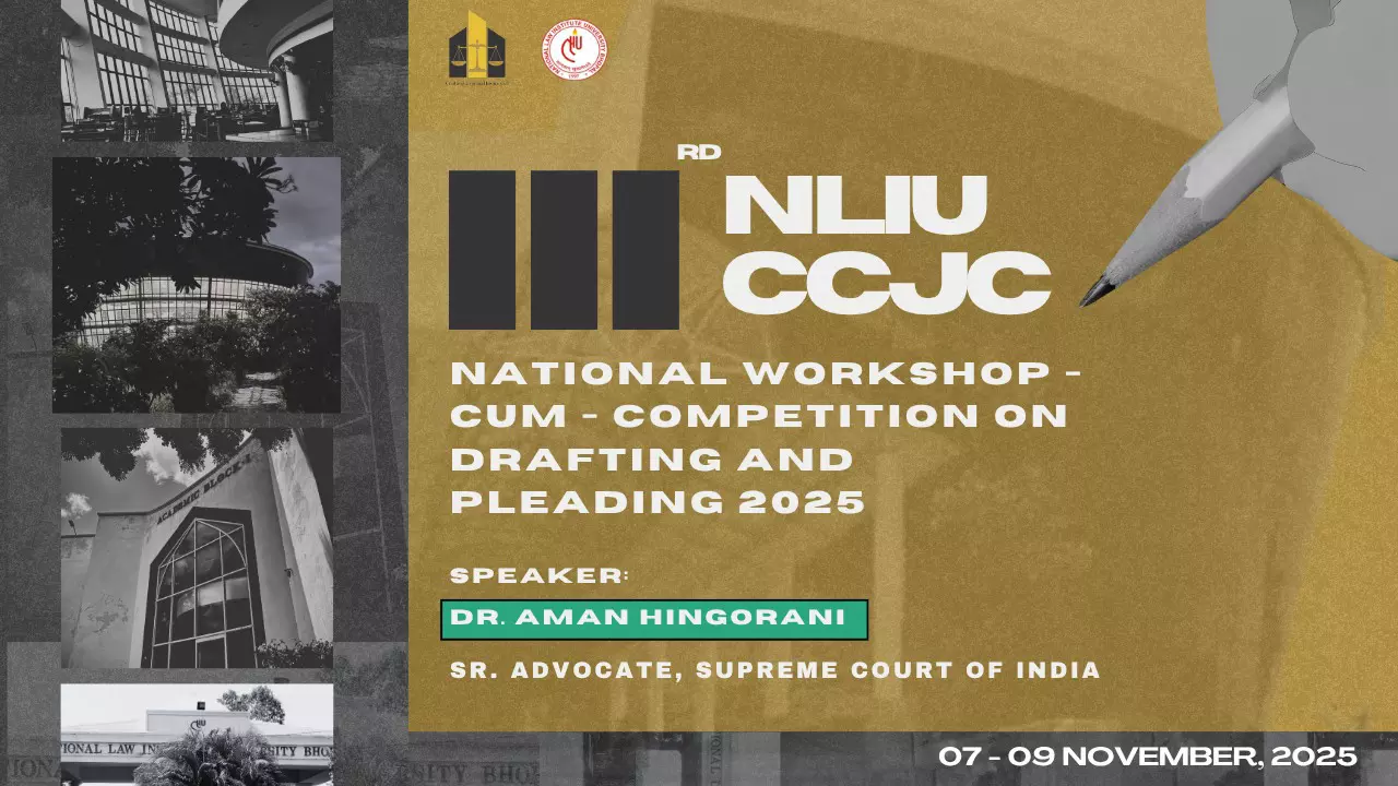 The Civil and Criminal Justice Cell (CCJC) of National Law Institute University (NLIU), Bhopal, has opened registrations for its 3rd National Workshop-cum-Competition on Drafting and Pleading, scheduled to take place from 7th to 9th November, 2025, in the physical mode at the NLIU campus. The workshop aims to provide law students and young practitioners with a practical immersion into the strategic realms of legal drafting and pleading.