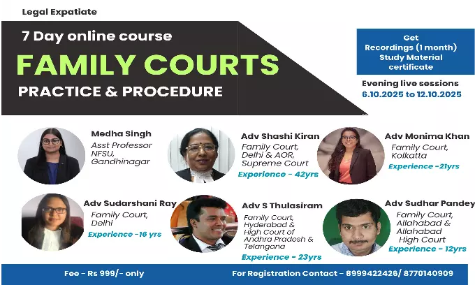 ![[Advt.] 7 Day Online Certificate Course On Family Courts: Practice & Procedure By Legal Expatiate [Register Before 5th October] [Advt.] 7 Day Online Certificate Course On Family Courts: Practice & Procedure By Legal Expatiate [Register Before 5th October]](https://www-livelaw-in.demo.remotlog.com/h-upload/2025/09/30/750x450_623578-b1d046b7-9721-4a2c-bd3c-fde59fd41ef4.webp)