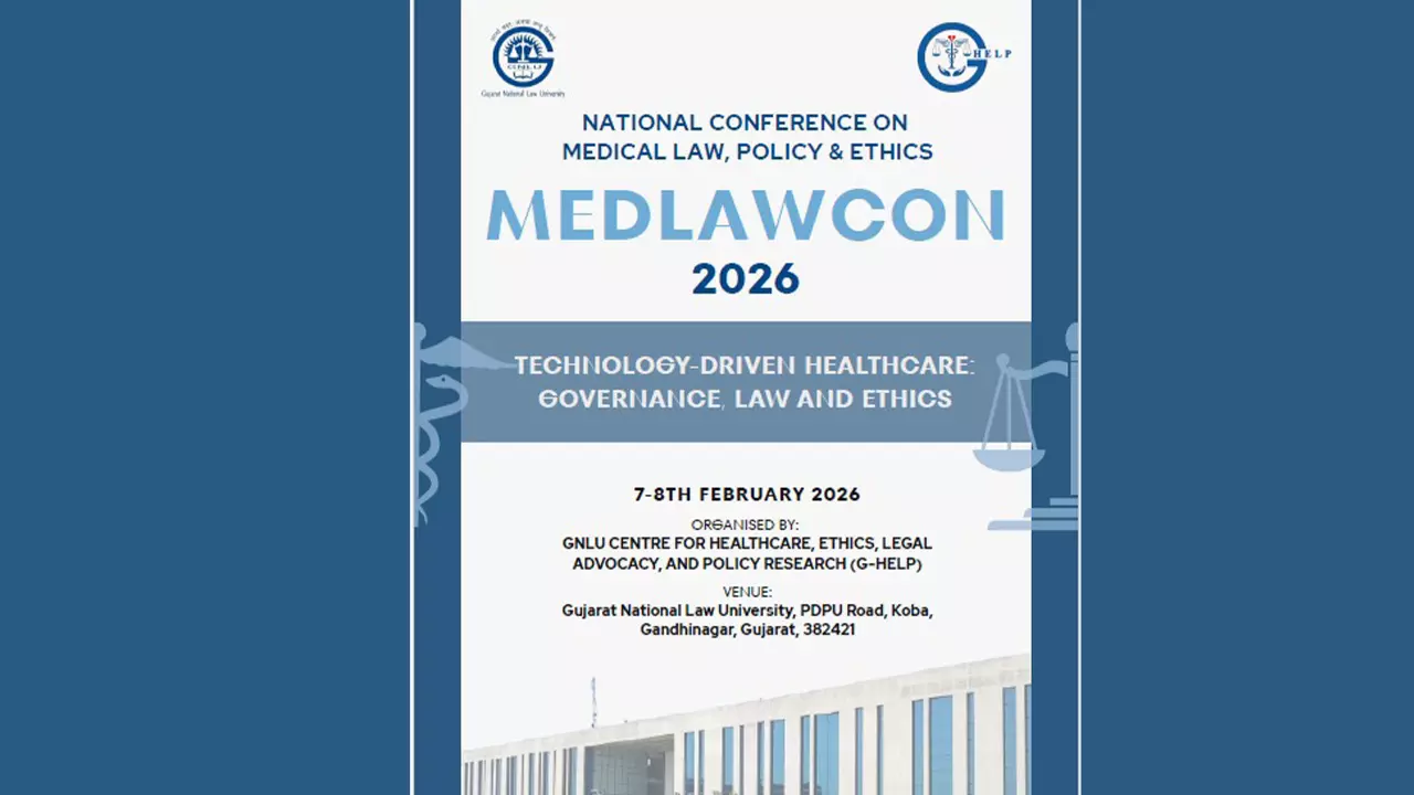 The Gujarat National Law University (GNLU), through its Centre for Healthcare, Ethics, Legal Advocacy and Policy Research (G-HELP), has announced the 3rd National Conference on Medical Law, Policy & Ethics (MEDLAWCON-2026), to be held on 7–8 February 2026 at GNLU, Gandhinagar, Gujarat.